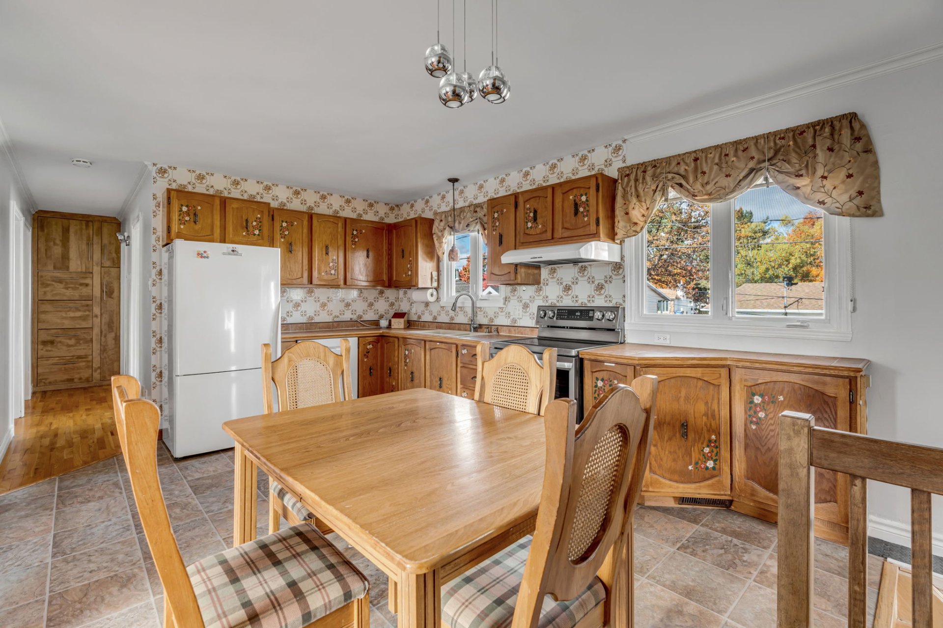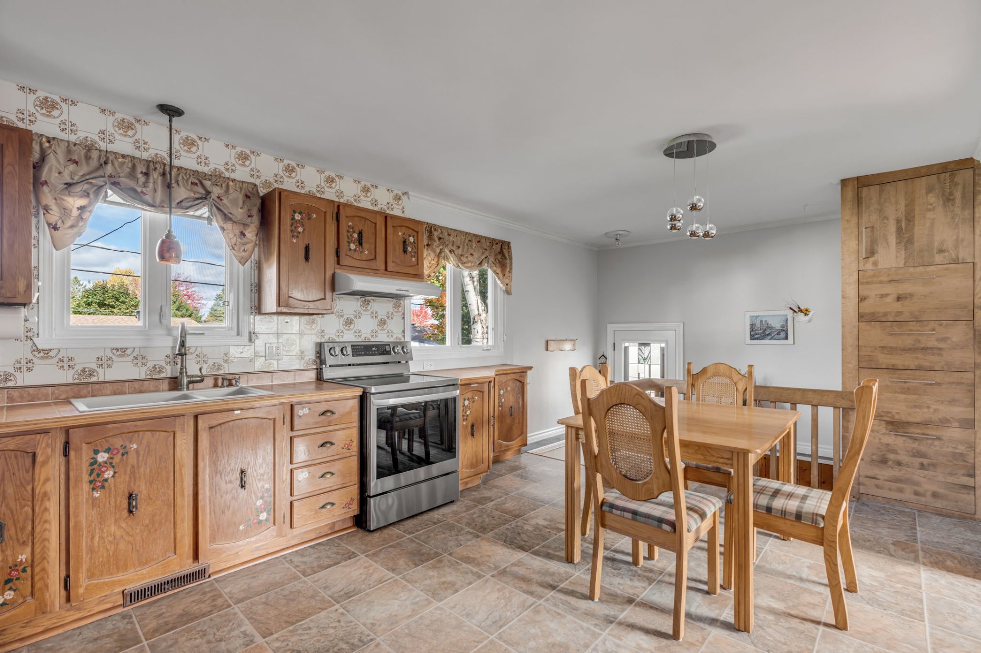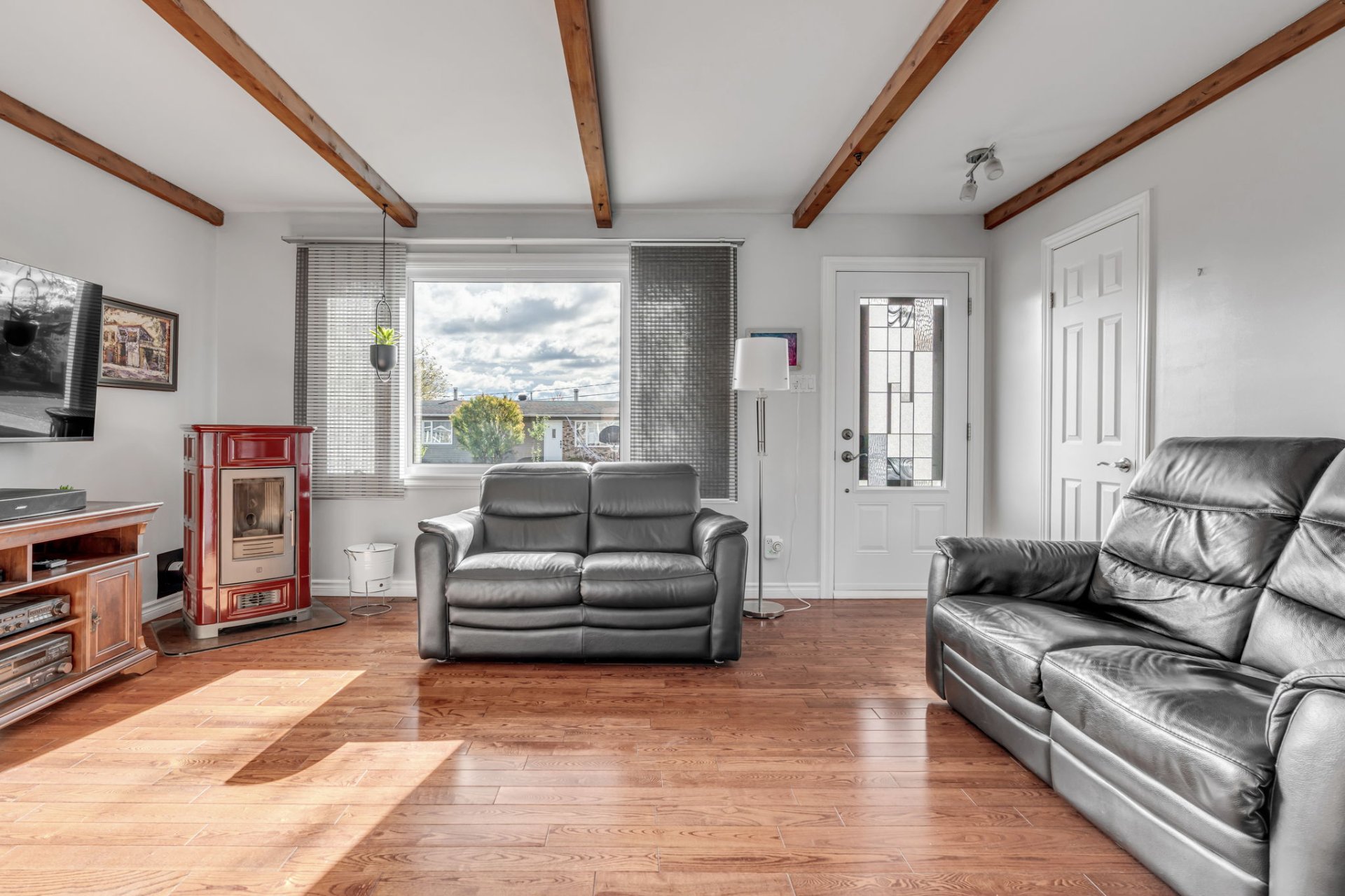 luminaires, toiles et stores, rideaux et tringles, aspirateur central et accessoires, lave-vaisselle, foyer aux granules.