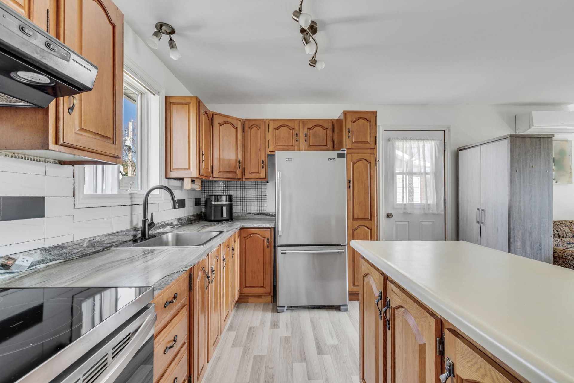 Lumières, rideaux et tringles, stores, thermopompe murale, aspirateur central et accessoires